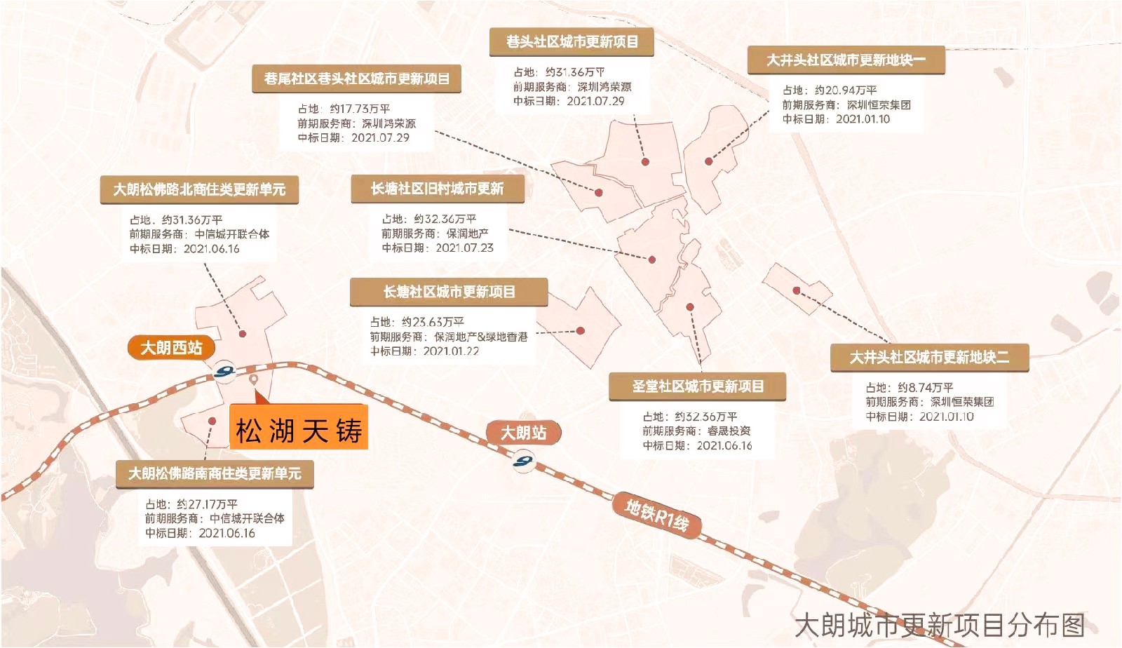 3、 超180萬平城市更新,革新大朗人居進化,超180萬平城市更新規制,相當干再造3個“深圳華潤城”,以巨擎規劃,驅動大朗人居進化!項目周邊超13個城市更新項目陸續啟動,新城配套升級煥新指日可待!