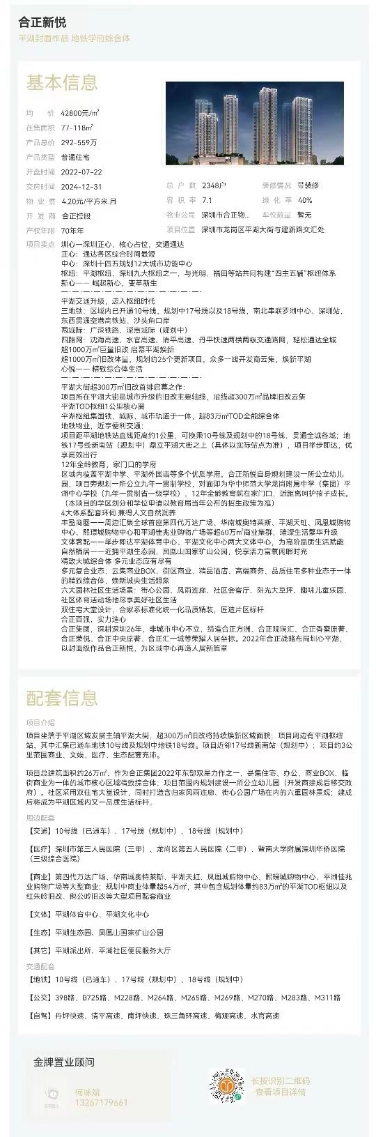 區域內覆蓋平湖中學、平湖外國語等多個優質學府,合正新悅自身規劃建設一所公立幼兒園,項目旁規劃一所公立九年一貫制學校,對面即為華中師范大學龍崗附屬中學(集團)平湖中心學校(九年一貫制省一級學校),12年全齡教育就在家門口,近距離呵護孩子成長。